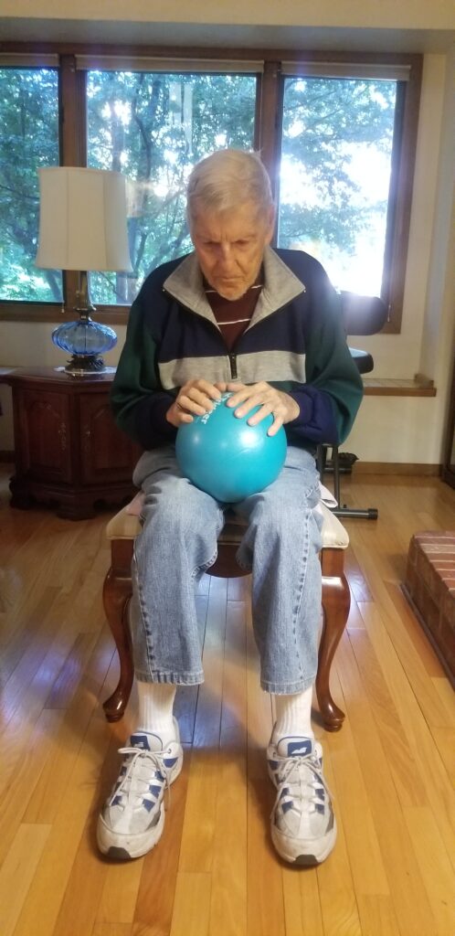 - Improving Stability: we first work on improving stability, so they feel more stable and confident to complete more difficult physical tasks. These static exercises are completed first seated and then standing with support.